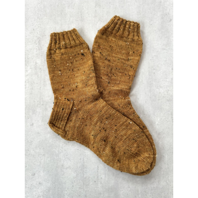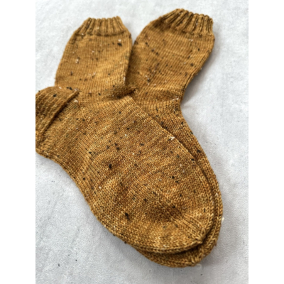 Tuotekuvista näet myös sukkaparin, mikä on neulottu Kermatoffee-värisestä tweed-langasta. Yksi sukkapari painaa n. 70 g.