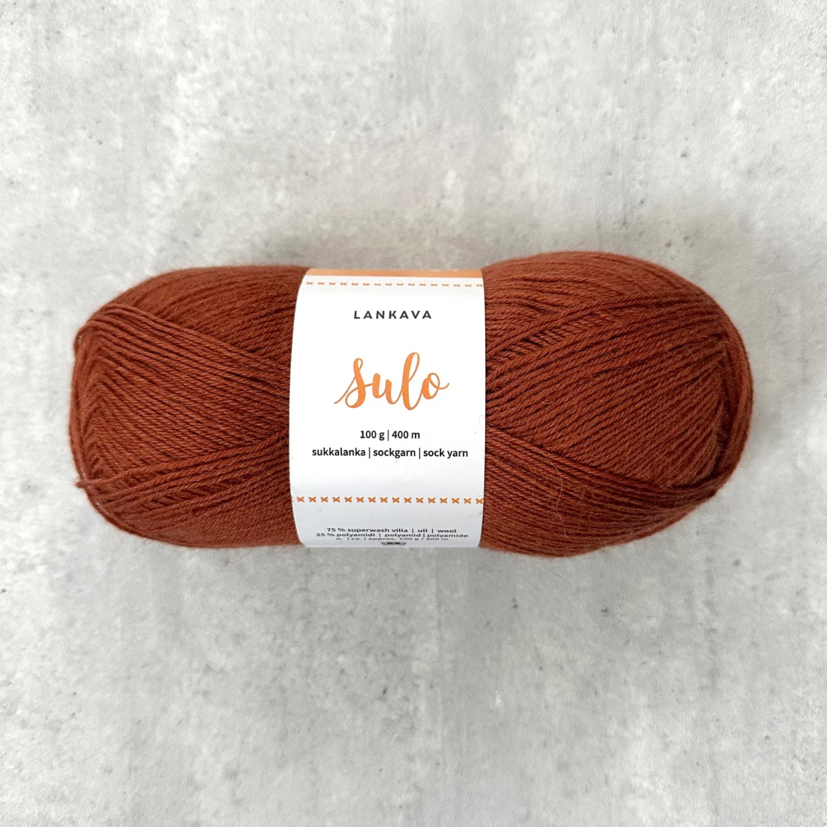 Sulo-sukkalanka on Lankavan oman sukkalankaperheen ohuin sukkalanka. Se on nelisäikeinen ja sen valmistuksessa on käytetty konepestävää Superwash-villaa 75 % ja kulutuskestävyyden varmistamiseksi siihen on lisätty 25 % polyamidia.  100 g kerässä on lankaa n. 400 metriä ja puikkosuositus on 2-3 mm. Sulo-sukkalangasta valmistuvat sukat sopivat kenkään ja jokapäiväiseen käyttöön. Neulo lämpimät villasukat itselle, perheelle tai lahjaksi! Suloiset pitsisukatkin valmistuvat tästä ohuesta sukkalangasta. Sulo-sukkalanka sopii loistavasti myös muihin neulevaatteisiin.