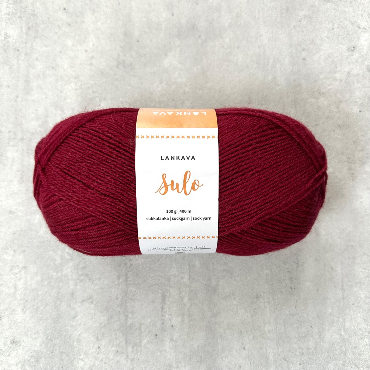 Sulo-sukkalanka on Lankavan oman sukkalankaperheen ohuin sukkalanka. Se on nelisäikeinen ja sen valmistuksessa on käytetty konepestävää Superwash-villaa 75 % ja kulutuskestävyyden varmistamiseksi siihen on lisätty 25 % polyamidia. 100 g kerässä on lankaa n. 400 metriä ja puikkosuositus on 2-3 mm. Sulo-sukkalangasta valmistuvat sukat sopivat kenkään ja jokapäiväiseen käyttöön. Neulo lämpimät villasukat itselle, perheelle tai lahjaksi! Suloiset pitsisukatkin valmistuvat tästä ohuesta sukkalangasta. Sulo-sukkalanka sopii loistavasti myös muihin neulevaatteisiin.