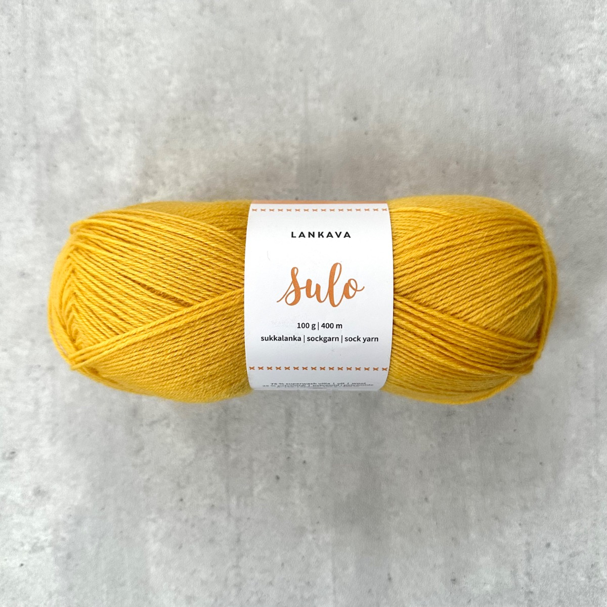 Sulo-sukkalanka on Lankavan oman sukkalankaperheen ohuin sukkalanka. Se on nelisäikeinen ja sen valmistuksessa on käytetty konepestävää Superwash-villaa 75 % ja kulutuskestävyyden varmistamiseksi siihen on lisätty 25 % polyamidia.  100 g kerässä on lankaa n. 400 metriä ja puikkosuositus on 2-3 mm. Sulo-sukkalangasta valmistuvat sukat sopivat kenkään ja jokapäiväiseen käyttöön. Neulo lämpimät villasukat itselle, perheelle tai lahjaksi! Suloiset pitsisukatkin valmistuvat tästä ohuesta sukkalangasta. Sulo-sukkalanka sopii loistavasti myös muihin neulevaatteisiin.