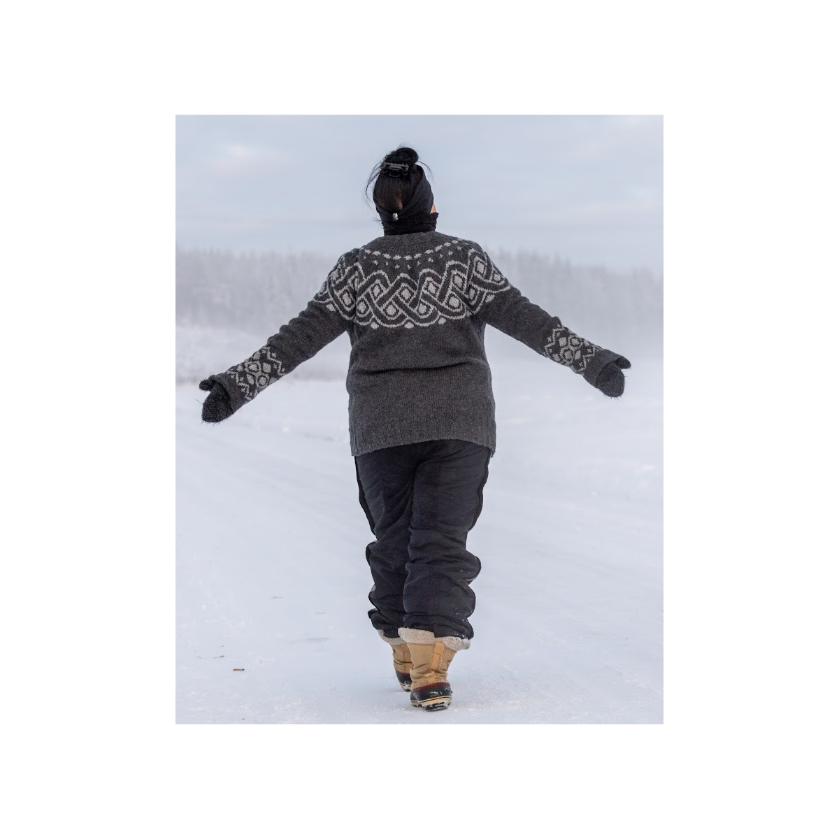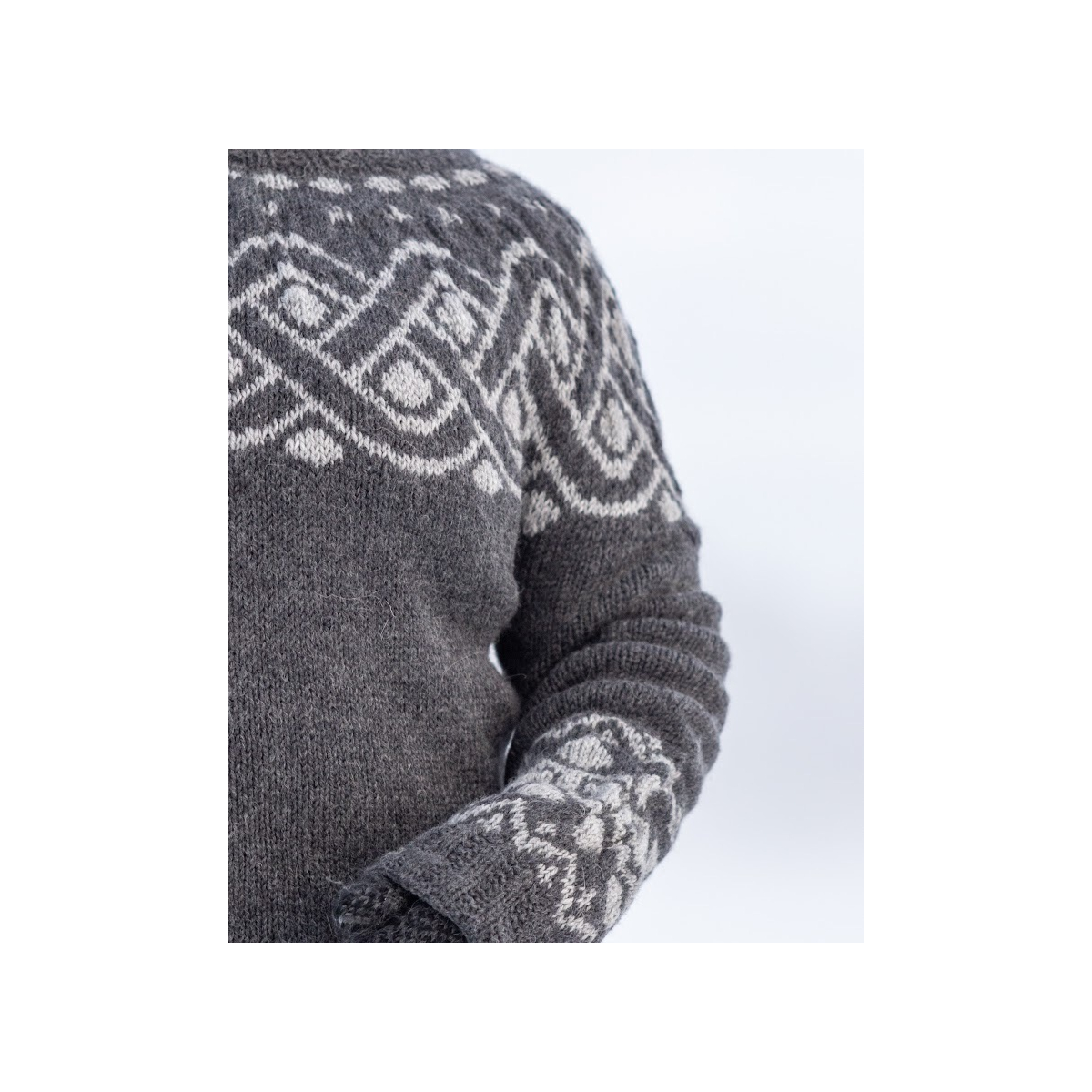 Kaarrokkeen valmistuttua, työstä erotetaan hihat asettamalla hihojen silmukat apulangalle paidan alaosan neulomisen ajaksi. Helman valmistuttua, hihojen silmukat poimitaan uudelleen puikolle ja hihat neulotaan loppuun. Helmaan ja hihansuihin neulotaan kirjoneulekuvio. Paidan kauluksessa, helmassa sekä hihansuissa toistuu sama joustinneulekuvio.
