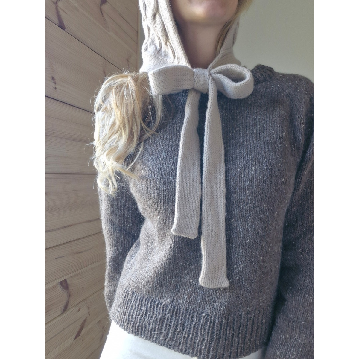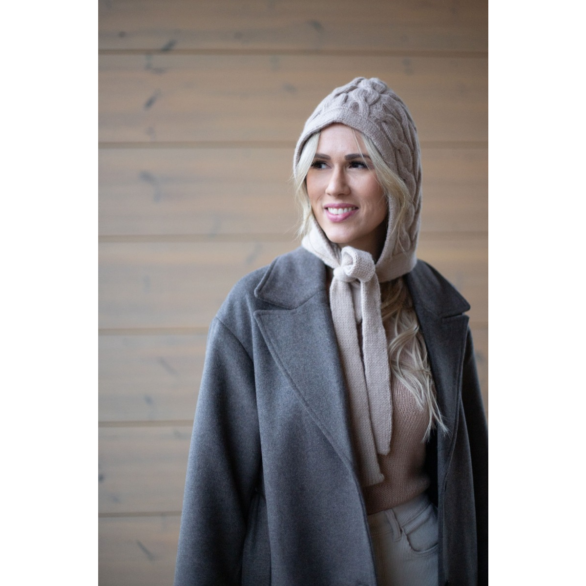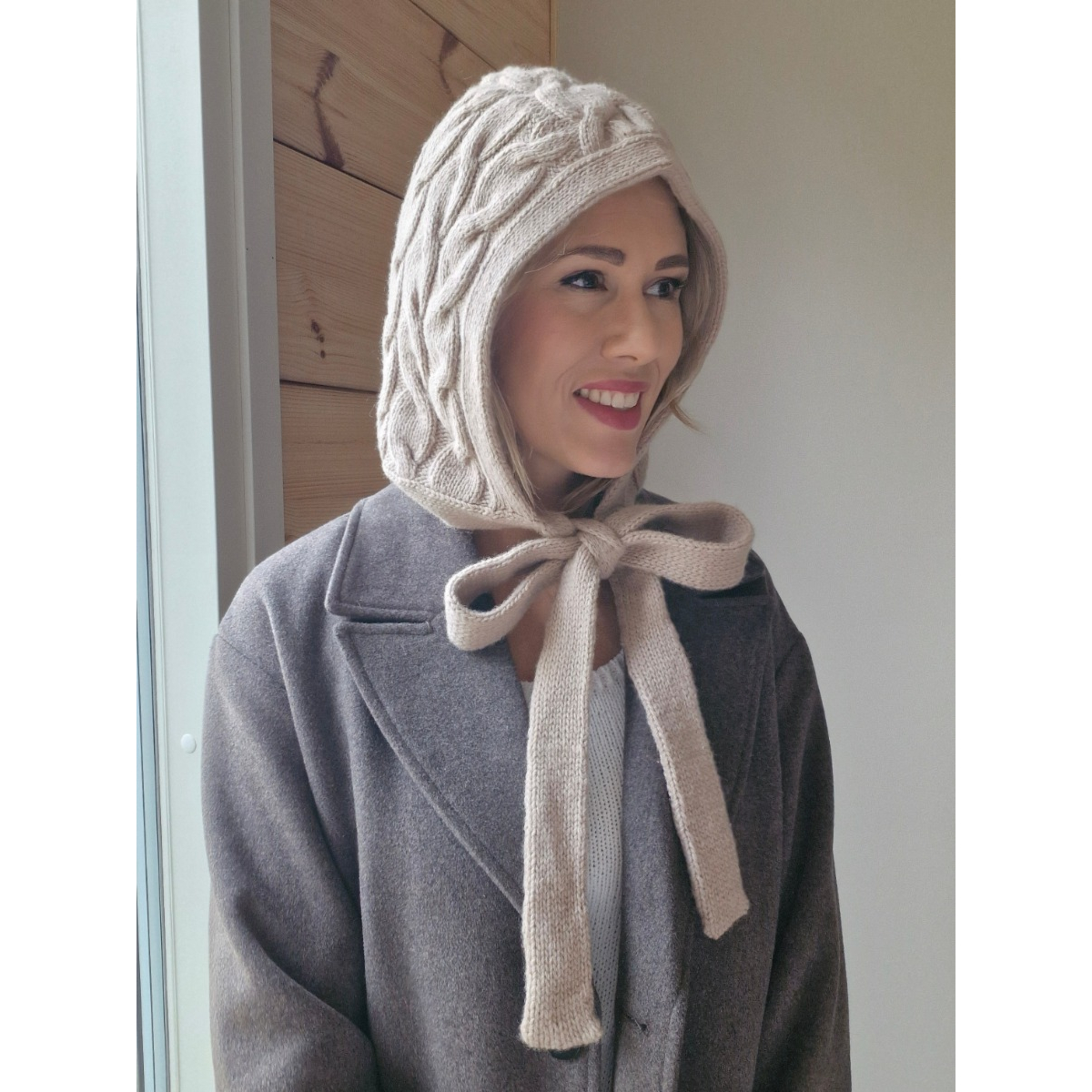 Aurora -balaclava on tyylikäs ja naisellinen palmikkoneulehuppu, joka pitää sinut lämpimänä ja tuo samalla ripauksen modernia ilmettä tyyliisi. Reilunkokoisen hupun alla hiukset pysyvät kauniina. Neulehupun pitkät nauhat saa solmittua suloiselle ja näyttävälle rusetille.