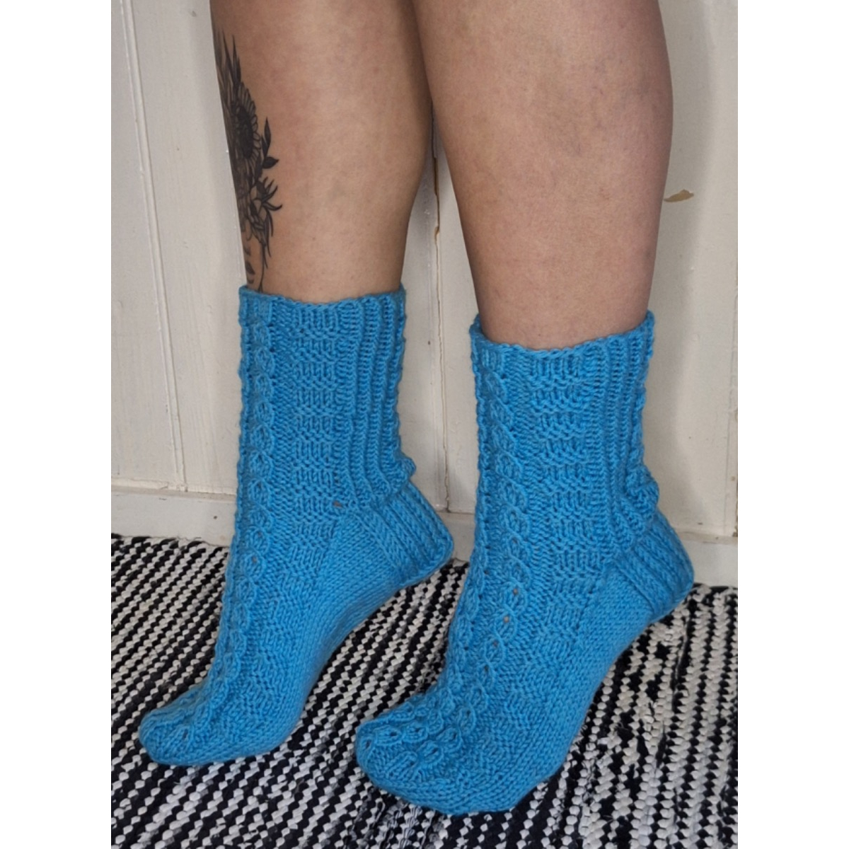 Helpot lyhytvartiset pintaneulesukat aloittelijoille. Varteen kaksi leveyttä, jalkaterän koko muokattavissa moneen kokoon.