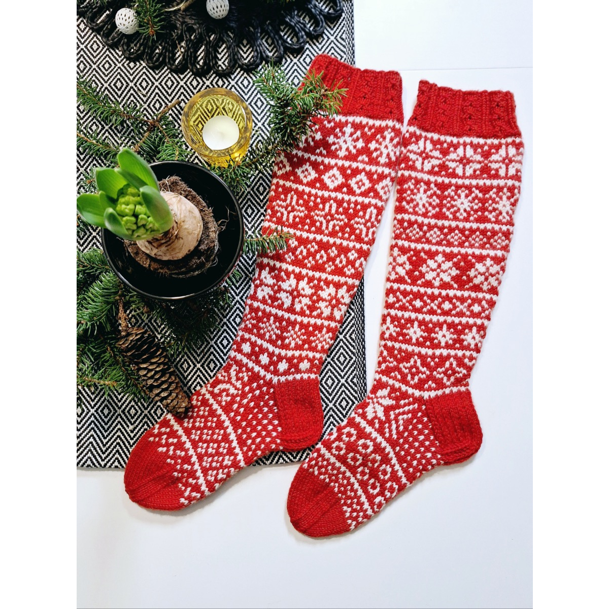 Hauskasti hiukan eripariset, mutta silti yhteensopivat sukat on neulottu osin kimaltelevasta langasta ja sopivat talvisukiksi, kun valitset oman lempparivärin punaisen jouluisen värin sijaan.
