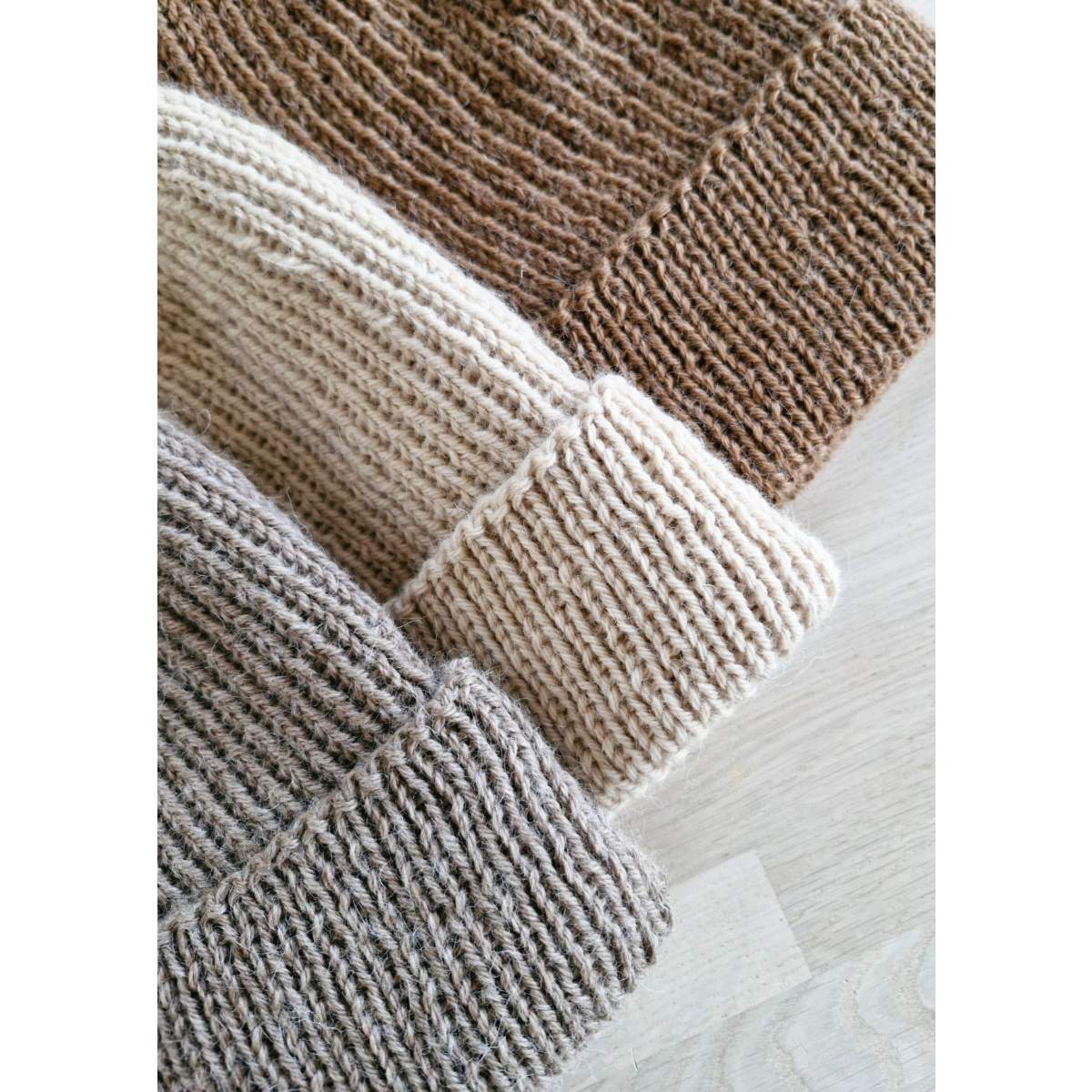 Mallipipot on neulottu Drops Lima -langasta, joka on villa-alpakkalanka. Lankavalinnalla voi helposti muuttaa Luotto-pipon yleisilmettä ja neuleen tuntua. Voit korvata langan millä tahansa dk-vahvuisella langalla ja neuloa unelmiesi arkipipon.