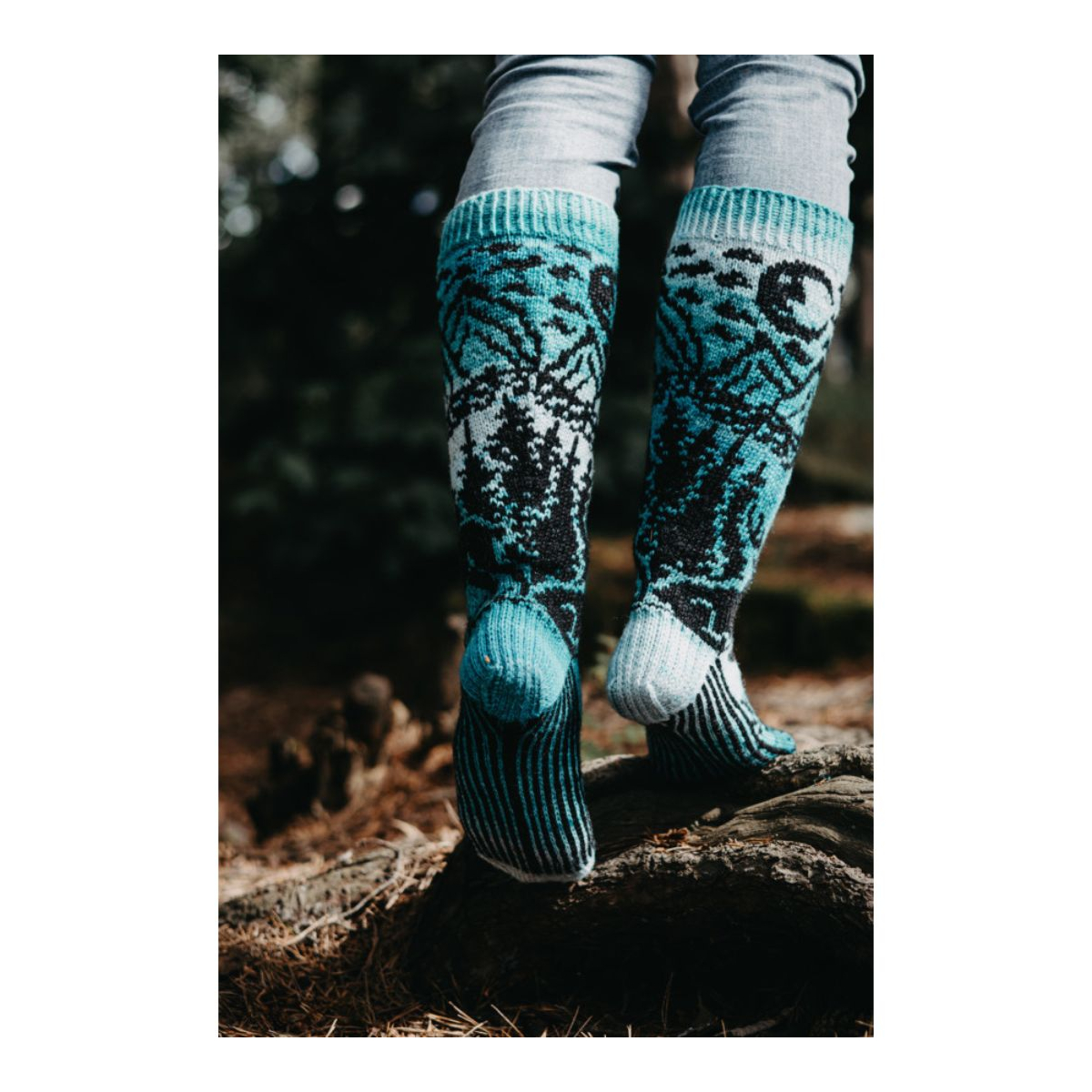 Metsän ruhtinas kirjoneulesukat ohje, FIN