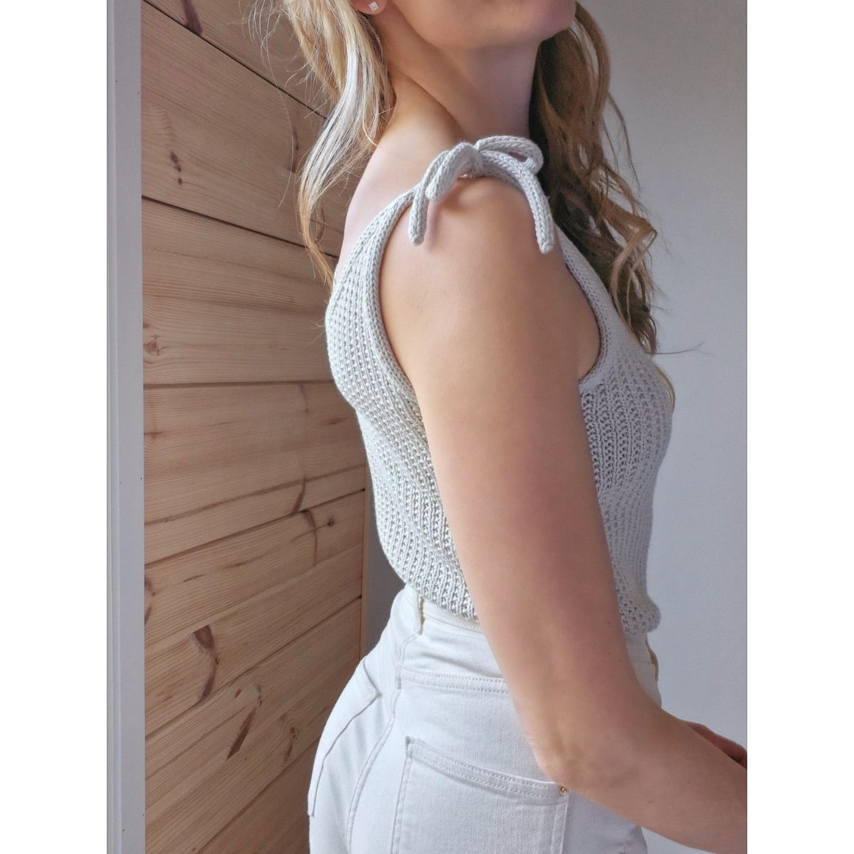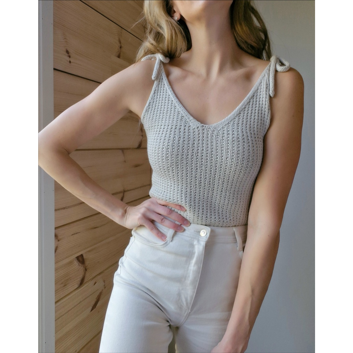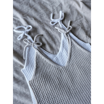 Mila -toppi on v-aukkoinen pintaneuletoppi, jonka hienostuneen ilmeen viimeistelevät näyttävät, solmittavat olkaimet. Toppi on suunniteltu sopimaan niin arkiseen kuin juhlavaan pukeutumiseen. Mila -neuletopin voit pukea niin shortsien, hameen kuin housujen pariksi ja tuntea olosi tyylikkääksi.