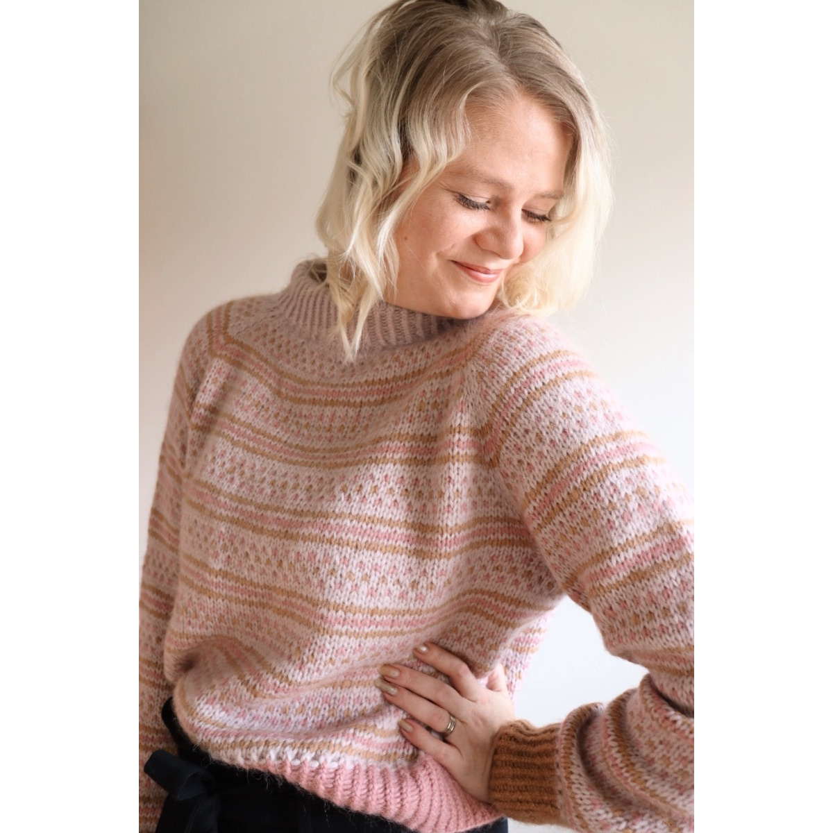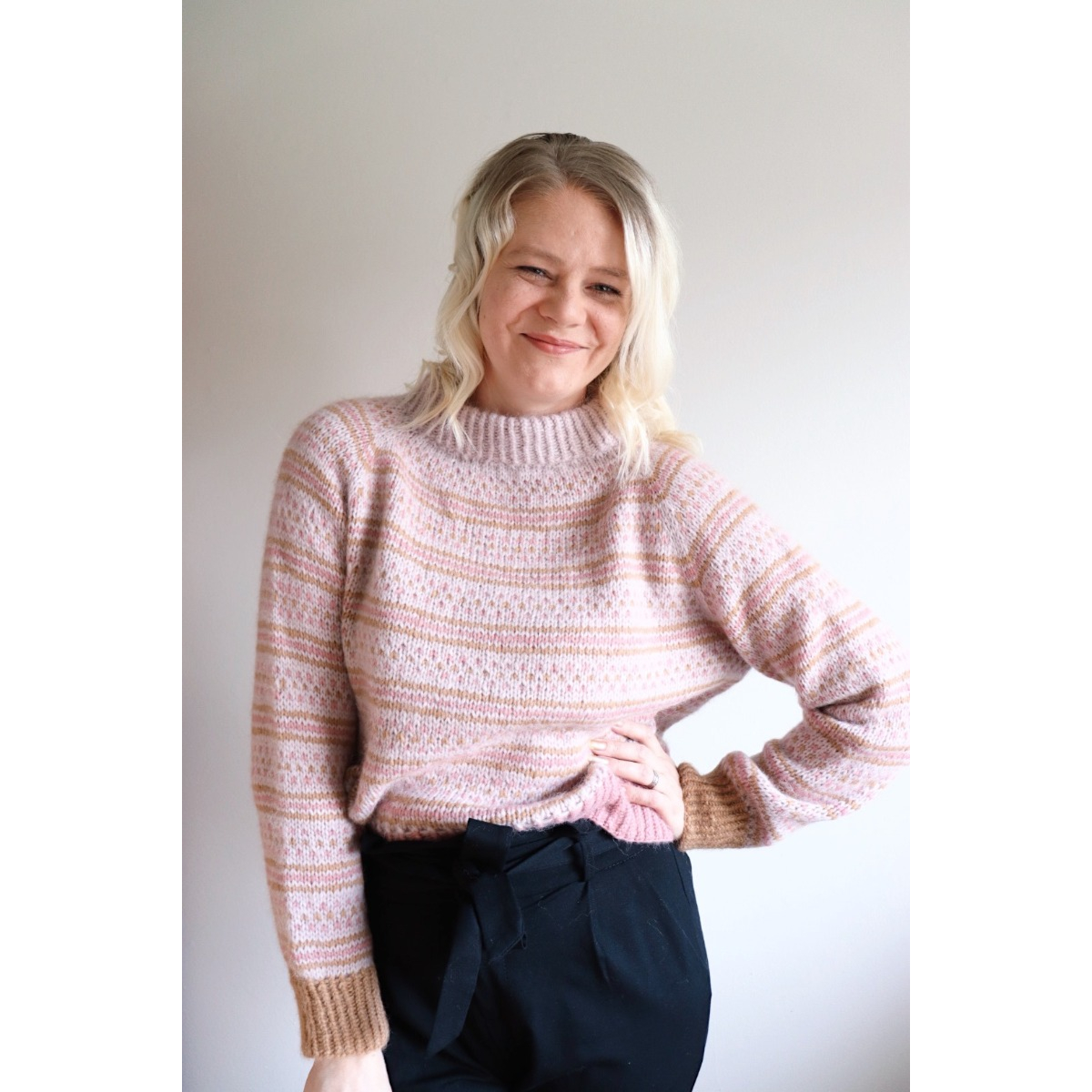 KV2 (pinkki, mallikappaleessa neulottu helman joustin pinkillä)