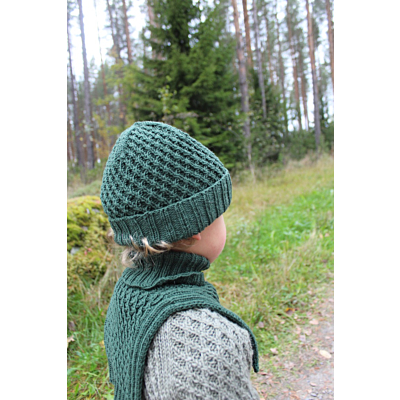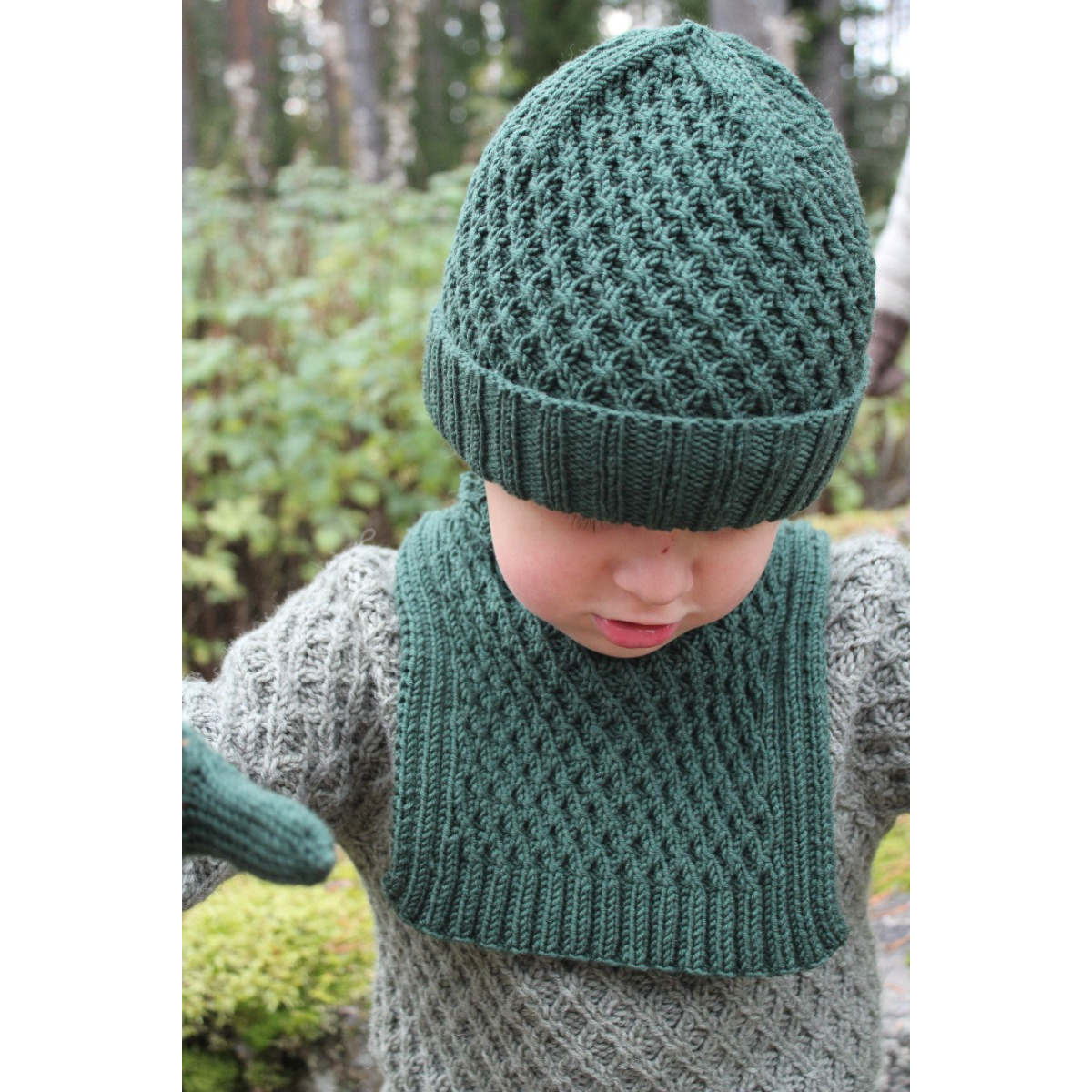 Niilo Beanie Junior on alhaalta ylös neulottu pipo. Aloitetaan neulomalla taittoreuna, jonka jälkeen jatketaan pintaneuletta ylös asti. Pintaneuletta neuloessa voit käyttää apupuikkoa apuna, mutta kahden silmukan palmikkoa voi hyvin neuloa ilman apupuikkoa.