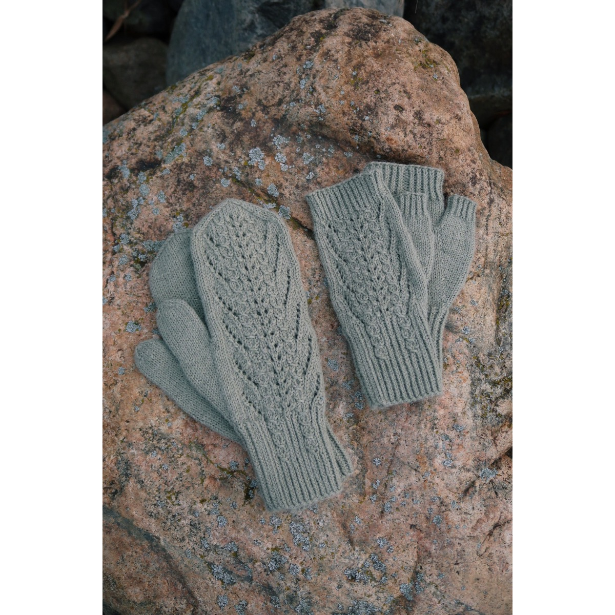 Tämän ohjeen avulla voit neuloa lapaset tai kämmekkäät – tai vaikka molemmat! Tämä pitsikuvio on herkkä ja kaunis. Lyhyen mallikerran ansiosta käsineet on helppo ja mukava neuloa. Mallikerran oppii myös nopeasti muistamaan ulkoa.