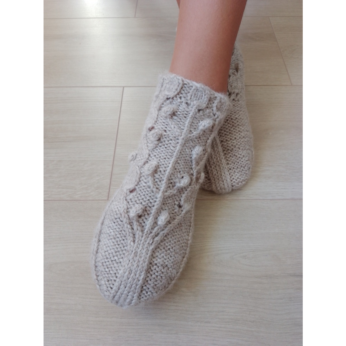 Versovat-nilkkasukat ovat nopeat neuloa. Jalkapöytää koristaa kaunis pintaneule tehden pinnasta elävän.