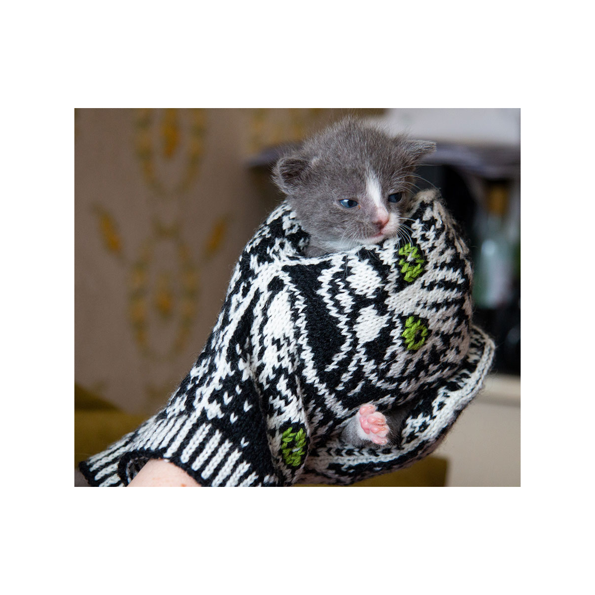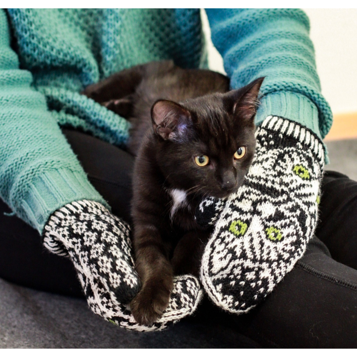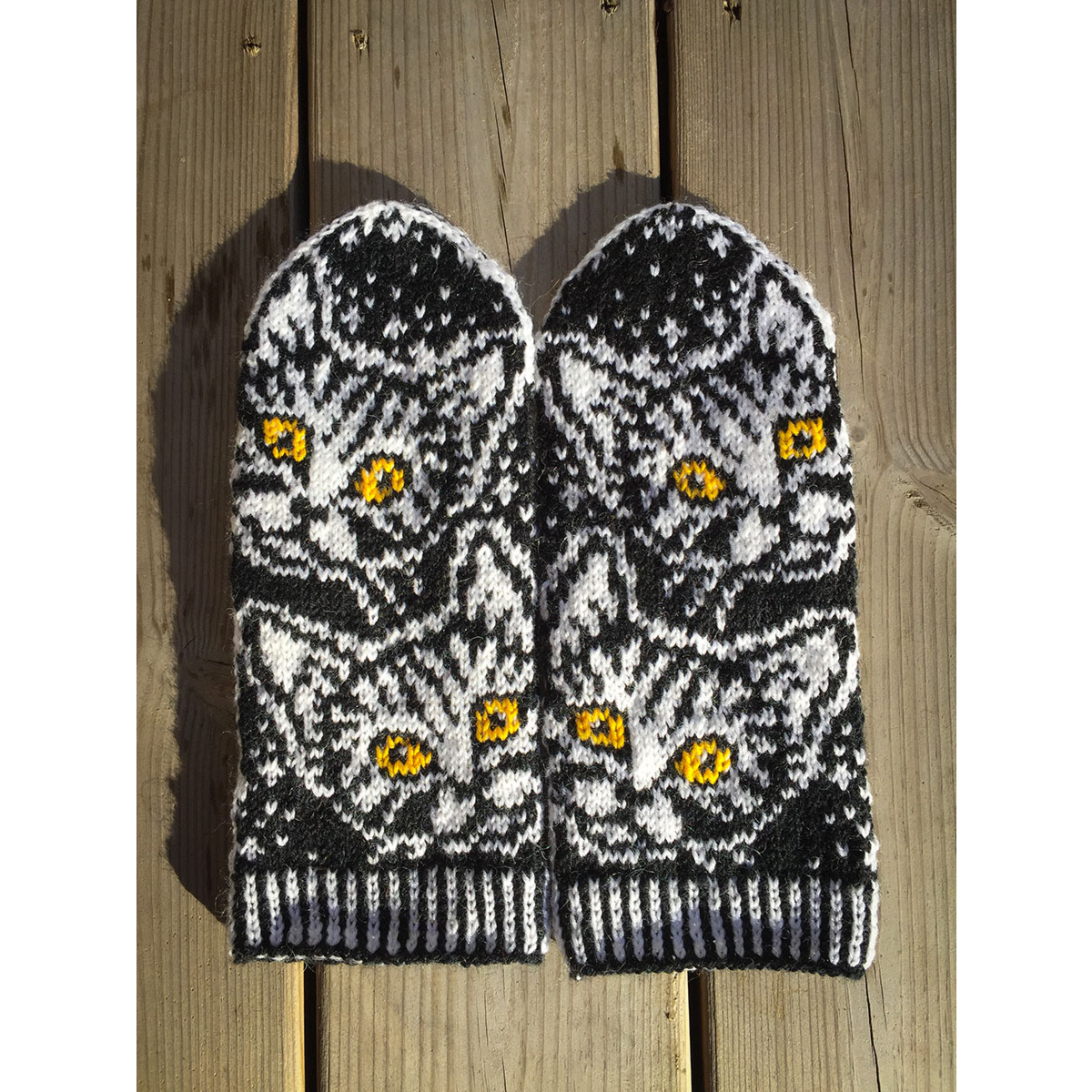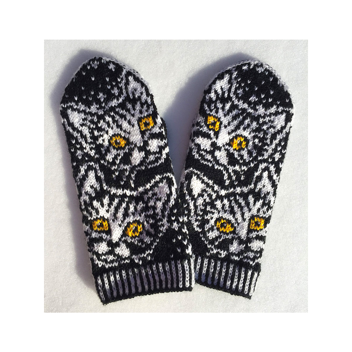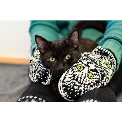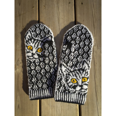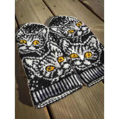 Nämä lapaset on suunniteltu sopimaan naisen käteen ja tulevat yhdessä koossa. Mustavalkoisiin lapasiin saat itse valita mieleisesi silmien värin kissoille. Tämä löytyy värivaihtoehtojen listasta.